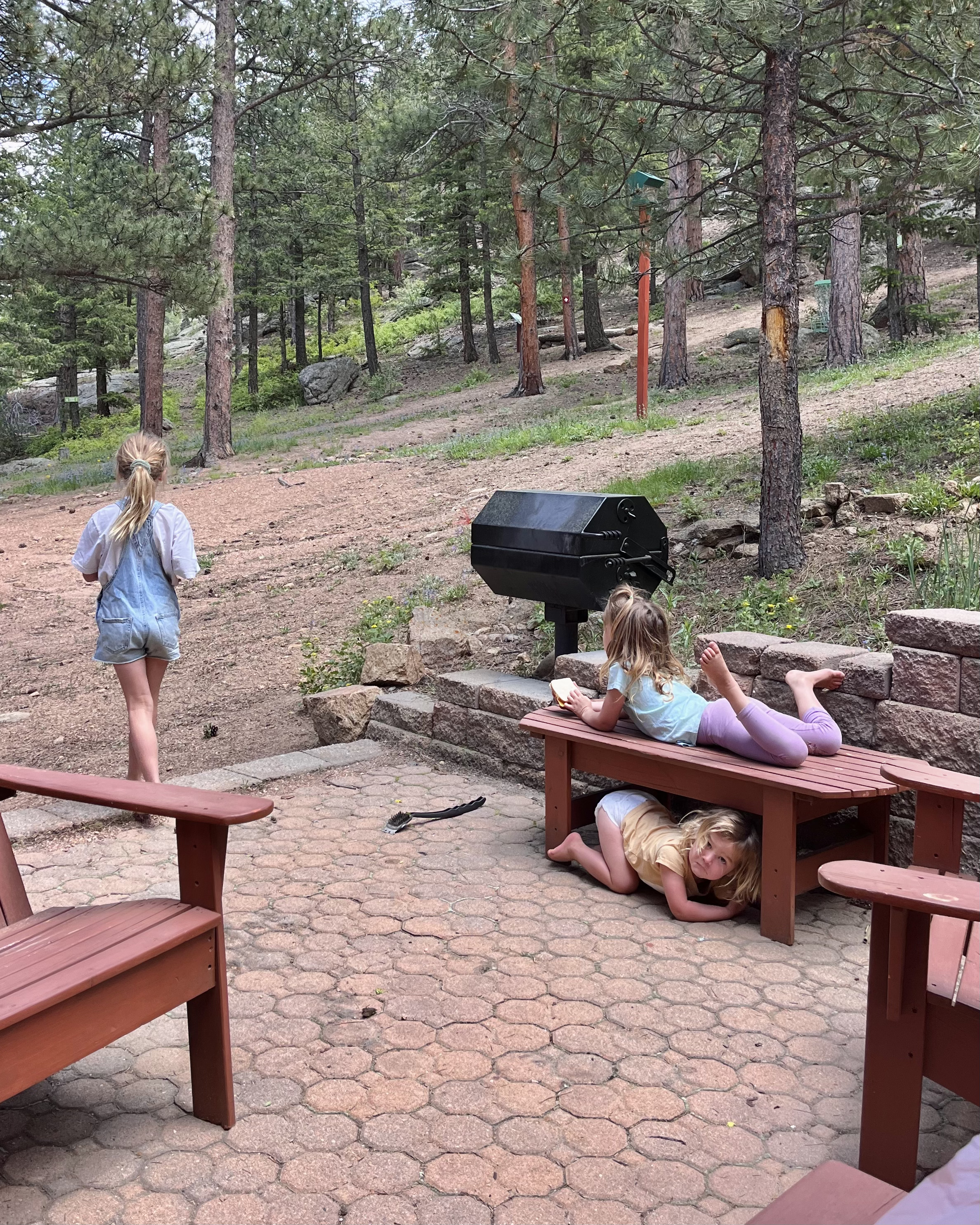 After passing by the scenery relatively quickly by car, we landed for a few days in Estes Park for two of our best friends’ wedding (more to come). There, we paused and had the delight of seeing Colorado more slowly and closely. We stumbled upon five moose friends, including a mama and her baby, in one hour at the Rocky Mountain National Park (thanks for nothing, Alaska! Just kidding, I love you Alaska). We hiked with the foreign native flowers and listened intently to the sequin-like leaves of the Aspen trees quaking in the wind. My girls made pinecone centerpieces and sold them to me for a hug. I love watching their creativity and bravery expand when we’re out of our routine.